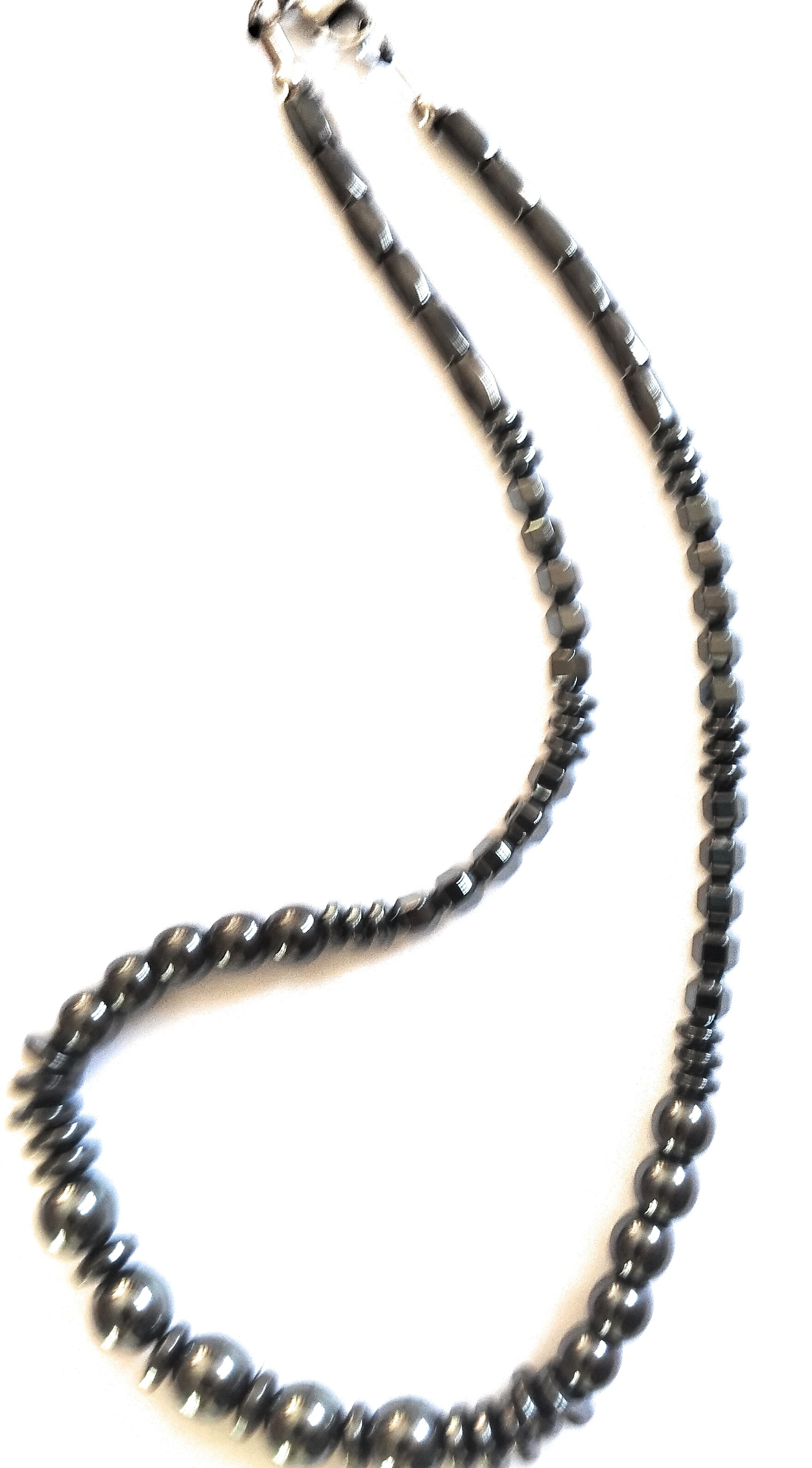 Collier homme avec des perles toutes en hématite, fait main en pièce unique.